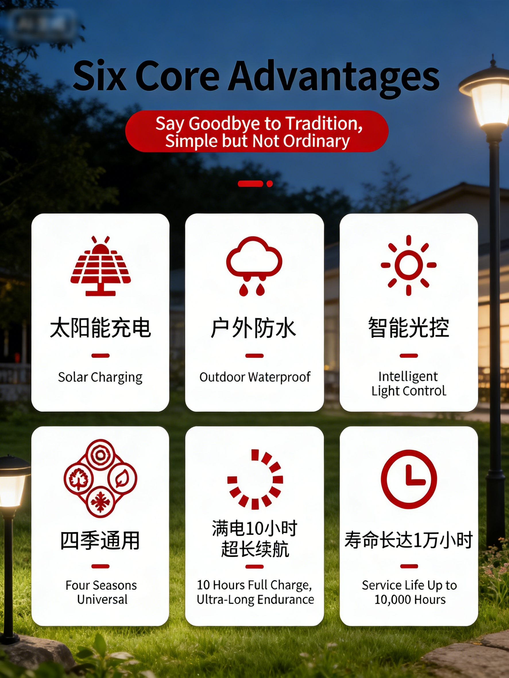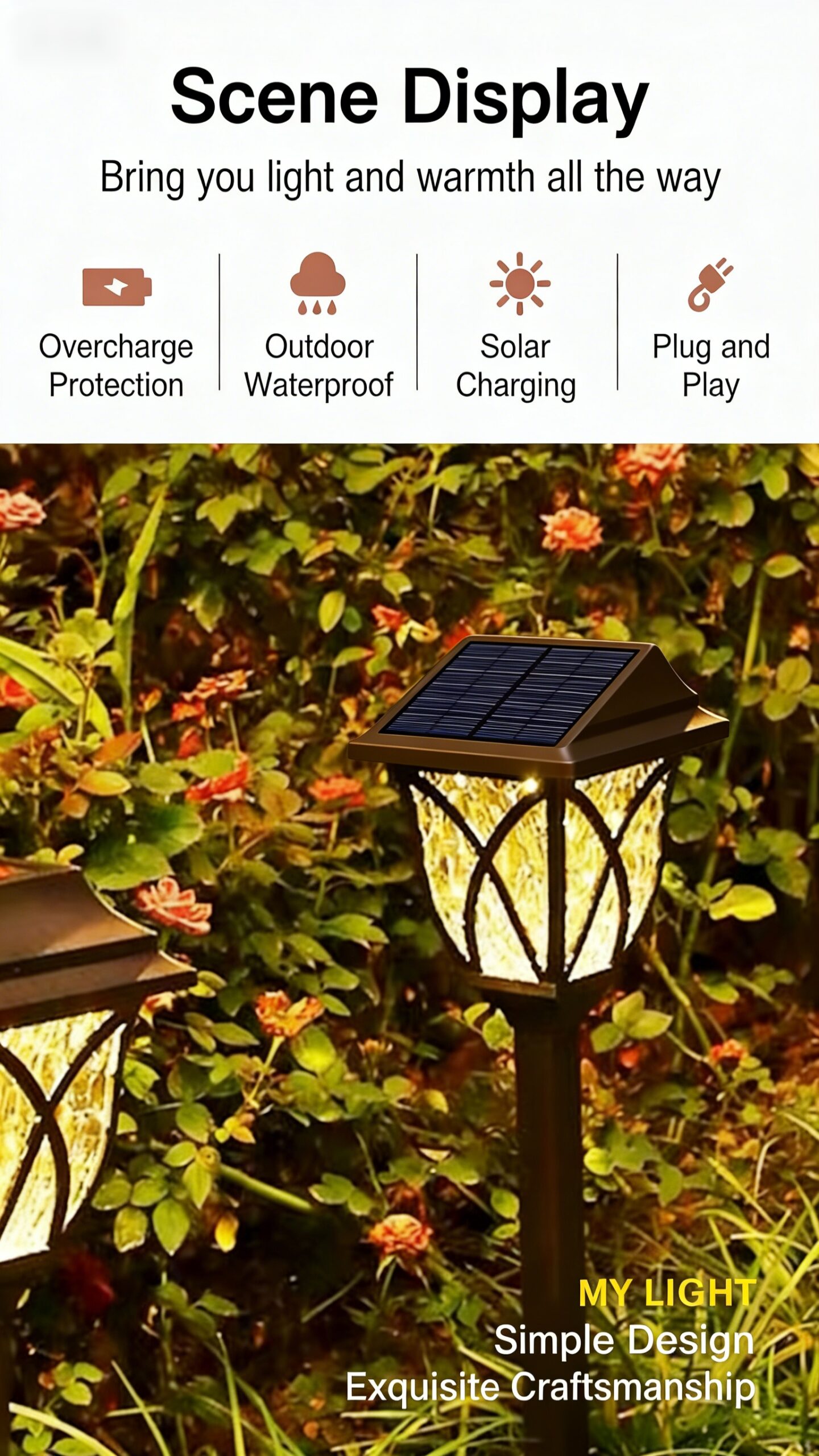 Solar-powered lawn lights for home and outdoor use, waterproof installation for yards, gardens, and lawns.